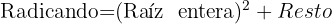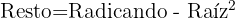 El resto es la diferencia entre el radicando y el cuadrado de la raíz entera.
