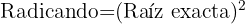 La raíz cuadrada de un número "a" es exacta cuando encontramos un número "b" que elevado al cuadrado es igual al radicando: