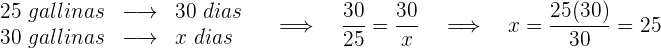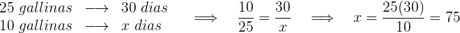 Se trata de una regla de tres inversa porque a menos gallinas corresponden más días para los que habrá comida.