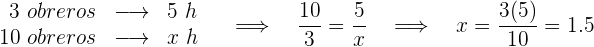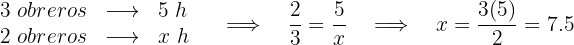 . ¿En cuánto tiempo realizarán dos obreros el mismo trabajo?
