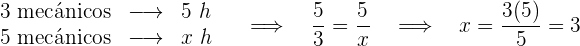 . Si se cuenta con cinco mecánicos, ¿en cuánto tiempo armarán el motor?