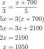 es decir, a la hija mayor le corresponden 1050 dólares. De aquí es sencillo calcular cuanto le corresponde a la hija menor, pues serian