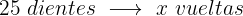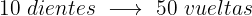 Dos engranajees se encuentran sincronizados entre si. El primero tiene 25 dientes y el segundo 10. Cuando el segundo engranaje haya dado 50 vueltas, ¿cuántas vueltas habrá dado el primero?