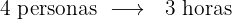 Cuatro personas cocinan 50 platillos en 3 horas. Si una de las personas se enferma, ¿cuánto tiempo le llevara a las tres personas preparar los 50 platillos?