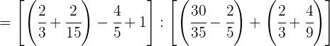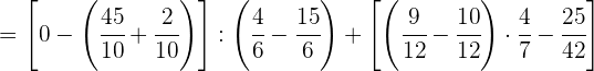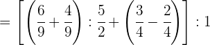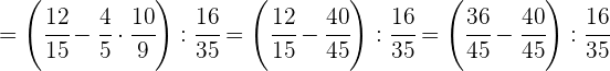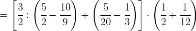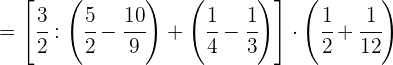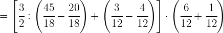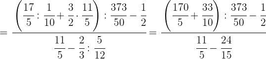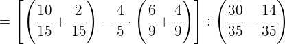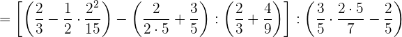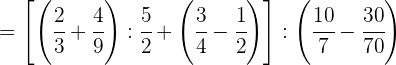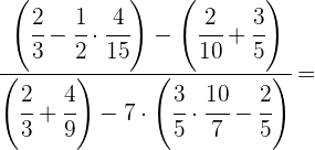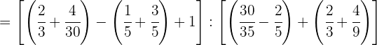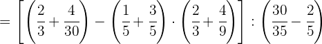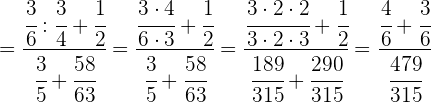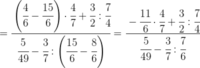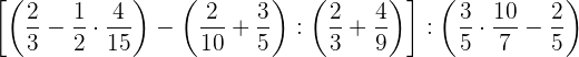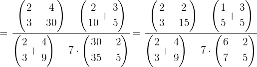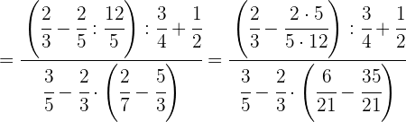 1 Pasamos los números mixtos a fracción, dividimos en el primer paréntesis y ponemos a común denominador el paréntesis del denominador