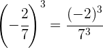 Para elevar una fracción a una potencia dada, se eleva el numerador y el denominador a dicha potencia y finalmente se desarrollan las potencias