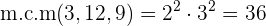 Calculamos el mínimo común múltiplo de los denominadores: 3, 12 y 9.