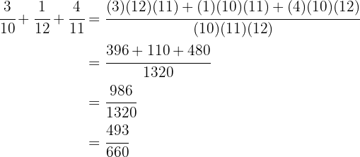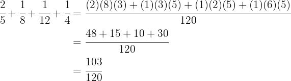 \displaystyle \cfrac{10}{120} < \cfrac{15}{120} < \cfrac{17}{120} < \cfrac{30}{120} < \cfrac{48}{120}[/latex]
