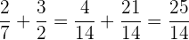Cuando se tienen distintos denominadores éstos se reducen a común denominador, y se suman (o restan) los numeradores de las fracciones equivalentes obtenidas. Por ejemplo, consideremos la siguiente suma