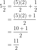 Para pasar de número mixto a fracción, se deja el mismo denominador y el numerador es la suma del producto del entero por el denominador más el numerador, del número mixto.
