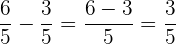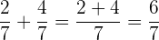 Cuando se tiene el mismo denominador símplemente se suman (o restan) los numeradores y se mantiene el denominador, por ejemplo, veamos la siguiente suma