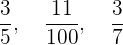 Son aquellas cuyo numerador es menor que el denominador. Su valor comprendido está entre cero y uno. Ejemplos son