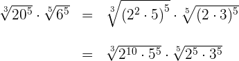 · 1El exponente cinco entra en cada una de las raíces y se convierte en el exponente del radicando