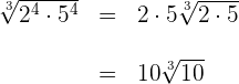 · 1El exponente cúbico entra en cada una de las raíces y se convierte en el exponente del radicando