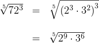 2Expresamos el radicando como producto de factores primos y elevamos a la potencia indicada