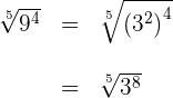 · 1El exponente cuatro entra en la raíz y se convierte en el exponente del radicando