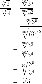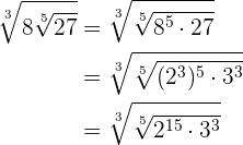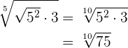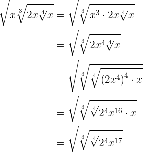 Similar a los ejercicios anteriores, obtenemos lo siguiente utilizando propiedades de radicales y exponentes