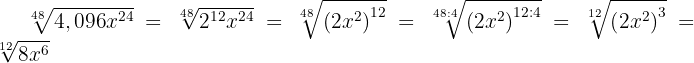 Tenemos que encontrar un radical equivalente a  empleando simplificación de radicales