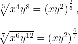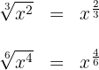 y  son radicales equivalentes. Para verificar, escribimos ambos radicales en potencias fraccionarias