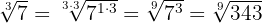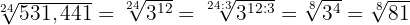 Expresamos el primer radical en notación fraccionaria, para ello factorizamos el radicando
