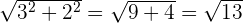 1Tomamos un rectángulo de base 3 y lado 2. Entonces, usando el teorema de Pitágoras encontramos que su diagonal mide