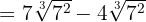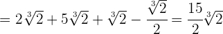 2En los dos primeros sumandos extraemos factores, el tercero siplificamos el radical dividiendo el índice y el exponente del radicando entre 2 y el último vamos a racionalizar multiplicando y dividiendo por por la raíz cúbica de 2