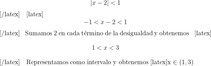 Representamos como intervalo y obtenemos , lo cual en la recta real se representa como