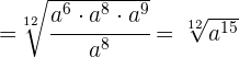 2Dividimos el común índice por cada uno de los índices 2, 3, 4 y 6 y cada resultado obtenido se multiplica por sus exponentes correspondientes 1, 2, 3 y 4