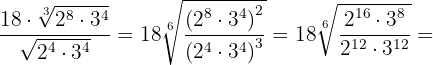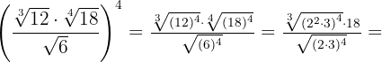 Elevamos los radicandos a la cuarta, descomponemos en factores los radicandos y extraemos el 18 del radical