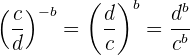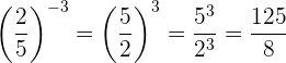 Una potencia con base fraccionaria y exponente negativo es igual al inverso multiplicativo de la base elevado al exponente positivo. Recordemos que el inverso de una fracción es igual a cambiar el numerador y el denominador entre sí, esto es, el inverso de . Por lo tanto, tenemos que