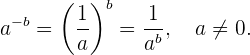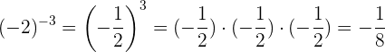 Una potencia con exponente negativo es igual al inverso multiplicativo de la base de la potencia elevado al exponente positivo (siempre que la base sea distinta de cero). Así, tenemos que