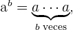 Una multiplicación formada por factores iguales se puede escribir en forma de potencia: , donde