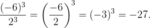 Cuando tenemos el cociente de dos potencias con el mismo exponente, el resultado es una nueva potencia en donde la base es el cociente de las bases originales elevada al mismo exponente.