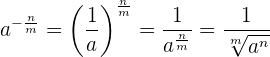 Al igual que en los casos anteriores, cuando el exponente es fraccionario negativo, es equivalente a elevar el inverso multiplicativo de la base al exponente positivo. Así, tendríamos que