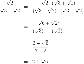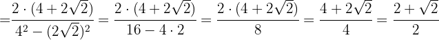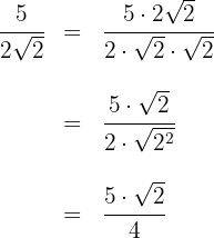 Multiplicamos numerador y denominador por la raíz de 2, realizamos los cálculos y simplificamos la fracción