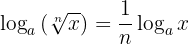4El logaritmo de una raíz es igual al cociente entre el logaritmo del radicando y el índice de la raíz: