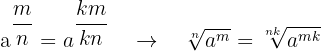 Recordemos que cuando tenemos una potencia con exponente racional esta es equivalente a un radical, considerando esto y la propiedad de las fracciones que dice que si se multiplica numerador y denominador por un mismo número la fracción es equivalente, tendremos que