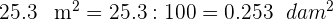 aPara convertir metros cuadrados a decámetros cuadrados, dividimos entre 100