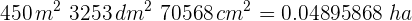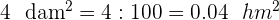 2Convertimos los decámetros cuadrados a hectómetros cuadrados dividiendo entre 100
