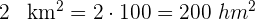1Convertimos los kilómetros cuadrados a hectómetros cuadrados multiplicando por 100