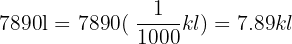 Para pasar de kl a l es necesario multiplicar por 1000 pues vamos a pasar a una unidad menor con tres espacios de diferencia,