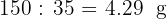 Indica el peso en gramos de cada porción redondeando a dos cifras decimales.