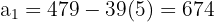 en el ejercicio Nro. 5 hay una inconsistencia: para hallar a 1 seria 479 = a1 + 39(5) entonces 39*5 = 195 —- al despejar 479 -195 = a1 el resultado seria a1 = 284 ___ que seria el primer termino de la progresion …. entonces la progresion quedaria, así: