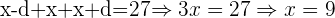 Para calcular el valor del primer y tercer término necesitamos conocer el valor de d. Usaremos la hipótesis de que la suma de sus cuadrados es