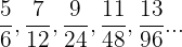 , además notemos que el primer término de la sucesión no empieza en un múltiplo de tres, por lo cual podemos expresar la sucesión de los denominadores como