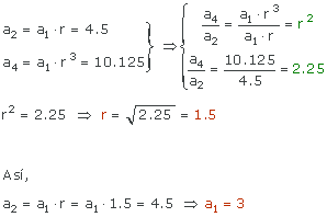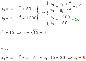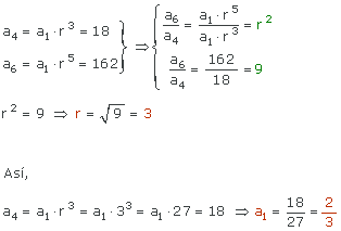 Sabiendo que los términos dados pertenencen a una progresión geométrica, completa los datos que se piden: