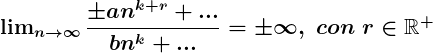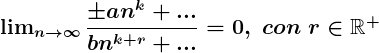 - Límite de cociente de polinomios en el cual el numerador tiene grado mayor que el denominador