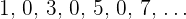 1, 1, 2, 4, 3, 9, 4, 16, 5, 25, ...
