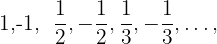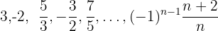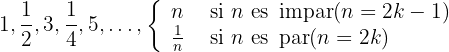 : Notemos que es una sucesión oscilante. Los términos impares forman progresión aritmética con