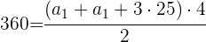 Sabemos que la suma de los ángulos interiores de un cuadrilátero es 360º por lo que sustituyendo en la fórmula de la suma de los primeros términos obtenemos: